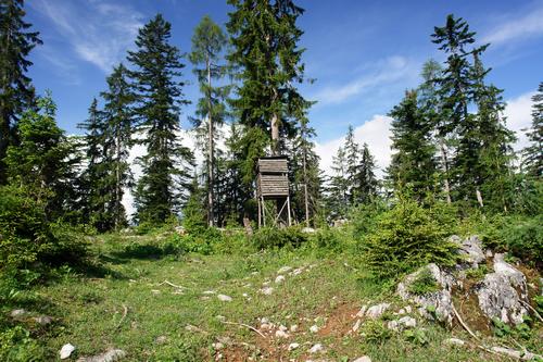 | Zwar habe ich heute kein großes Gipfelziel auserkoren, ich genieße aber das unbekümmerte Herumschweifen in den einsamen Wäldern. Erst beim Abstieg treffe ich auf der Forststraße auf einen weiteren Wanderer. Einen Wanderer habe ich unterwegs in der Ferne im Wald gesehen. |