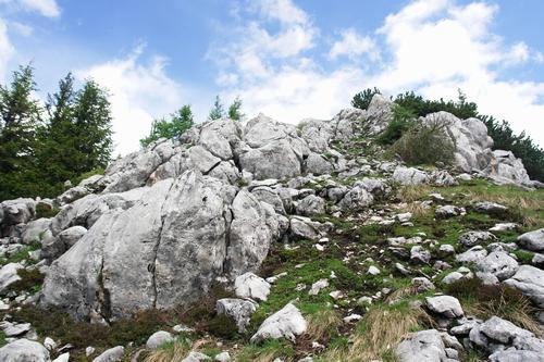 Zerkratzt kehre ich schließlich wieder um bis zu einem markanten freien Wiesenplatz am Fuße eines felsigen Bereiches.