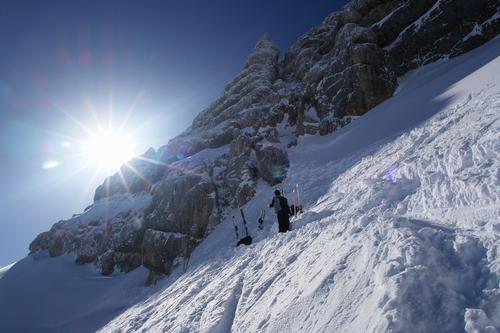 ... wo sich gerade einige Kletterer im Einstieg befinden ...
