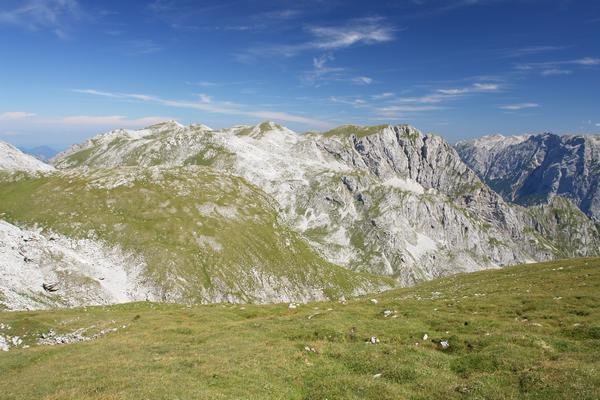 ... und Blick hinüber zu unserem 1. Gipfel - dem Rifflkopf (rechts). Rechts im Hintergrund das Tennengebirge.