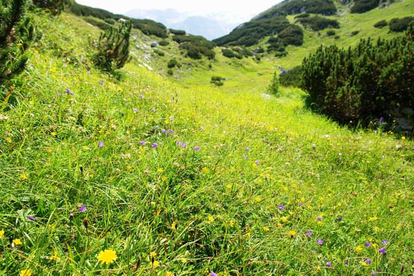 Über unerwartet blumenreiche, saftige Wiesen mit hohem, weichen Grase ...