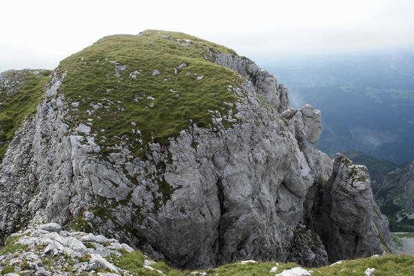 | Der Rifflkopf ist erreicht. Der höchste Punkt ist durch eine Scharte vom übrigen Gipfelstock abgetrennt. Den Übergang haben wir uns erspart, hätten wir aber gewußt, dass drüben ein Gipfelbuch wartet (wie später im Internet nachrecherchiert), hätten wir die kurze, ausgesetzte Kletterei aber natürlich in Kauf genommen. |