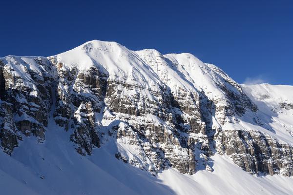 ... wo man erkennen kann, wie der Wind über den Gipfelbereich pfeifft. Auch bei mir herunten ist es im Wind eisig kalt.