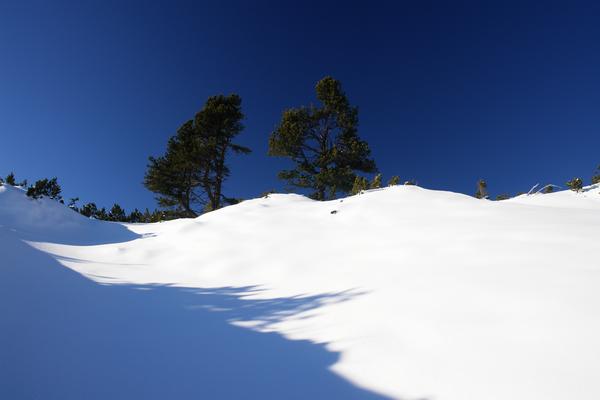... bis ich über die Südseite wieder einfaches Schneeschuhgelände erreiche.