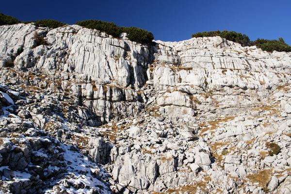 | Ich liebe diese rillendurchzogenen Felswände. Zwar kann man problemlos über reines Gehgelände zum Gipfel gelangen. Wer es aber vorzieht, die Hände an die sonnengewärmten Felsen zu legen, findet hier genug schöne, einfache Klettermöglichkeiten vor. |