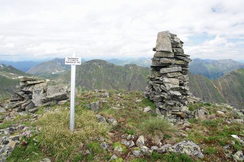 Auf der kleinen Erhebung nächst dem Rupprechtseck - ein großes Steinmandl und eine kleine Tafel ...