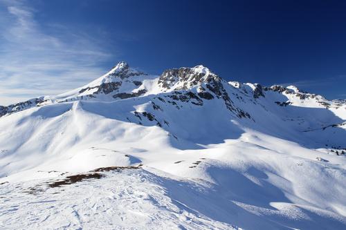 | Überblick über das nachmittägliche Tourengelände. Am rechten Bildrand die Schliererscharte über die ich herüber zum Wurmfeld gekommen bin. Nun steuere ich den weißen Schöpfing an, der von Gr. und Kl. Mosermandl überragt wird. |