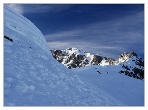Knapp unterhalb der Wechte - Ausblick zum Mosermandl.