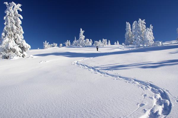| Hier war es wirklich wieder absolut ein Genuß, die eigenen Spuren im Schnee zu hinterlassen, so dass wir auch die eine oder andere nicht zwingend notwendige Kehre einlegten. |