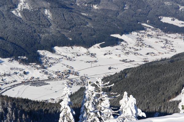 | Beim Tiefblick auf die unzähligen Autos der gut ausgelasteten (um nicht zu sagen, heillos überfüllten) Parkplätze unten im Tal (z.B. im linken, unteren Bildeck) sind wir heilfroh, die Ruhe und Einsamkeit hier heroben genießen zu dürfen. |