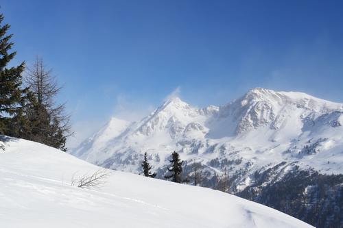 Eisig bläst der Sturm über die Gipfel um Obertauern.