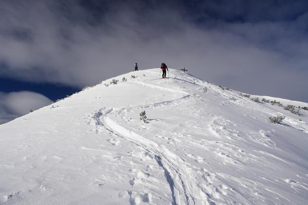 Die letzten Meter hinauf zum eisig umwindeten Gipfelkreuz.