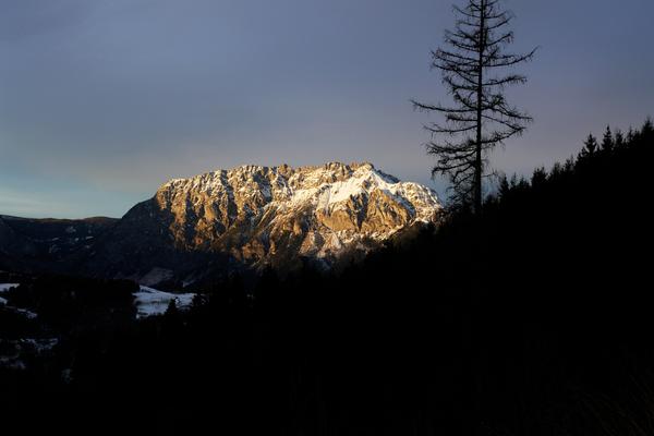 Ausblick zum Kammspitz. Kurz vor Sonnenuntergang zeigt sich noch einmal die Sonne.