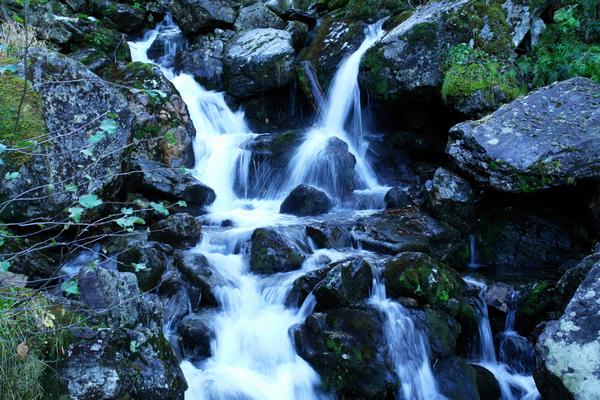 Rauschend ergießt sich ein Bächlein vom Stierkarsee hinab ins Tal.