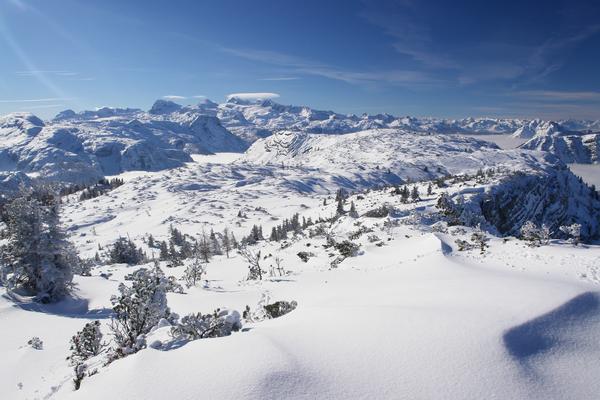 Ausblick über mein weiteres Tourengelände - die Hochfläche hinüber zum Feuerkogel (rechter Bildrand). Im Hintergrund ...