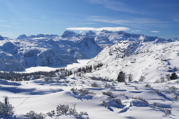 ... die höchsten Dachsteingipfel. Auf den Gipfeln war es heute weitgehend windstill. Gelegentlich das eine oder andere Wölkchen.