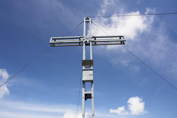 Beim Gipfelkreuz bin ich dann alleine, und ich sollte heute am Berg auch niemanden mehr treffen. Angenehme Temperaturen ließen mich wieder ein kurzes Päuschen machen, und die schöne Aussicht genießen.