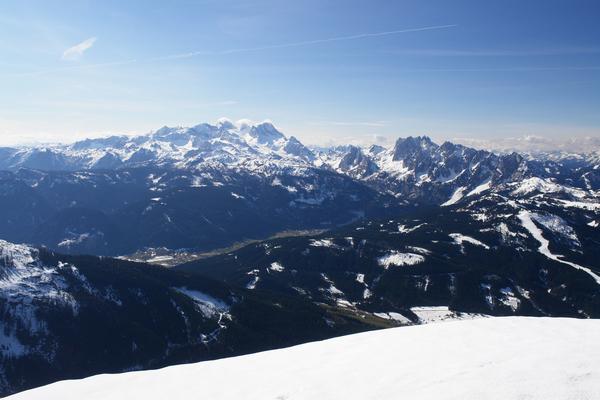 Herrliche Ausblicke zum Dachsteingebirge mit dem Gosaugletscher (links) und dem wild zerklüfteten Gosaukamm (rechts).