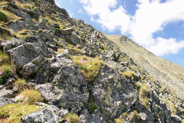 Schließlich machten wir uns von der Wildseespitze wieder auf den Rückweg (Ingrid oberhalb der Bildmitte) ...