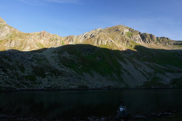 Bis zum Lignitzsee gehen wir im Schatten. Lediglich der westlich begrenzende Gipfelkranz lag bis hierher in der Sonne.