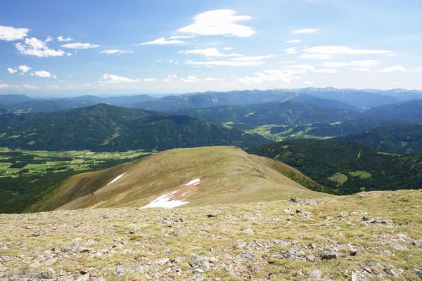 Für den Abstieg wählen wir jetzt den einfachen Steig hinunter auf das weitflächige Plateau ...
