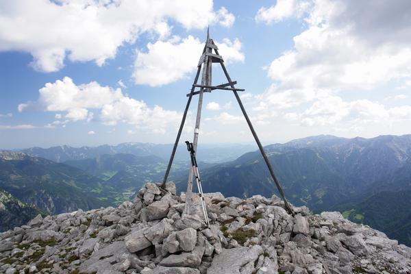 Bald habe ich das hohe Markierungszeichen am Hebenkas erreicht, welches ich einige Zeit aus der Ferne für ein Gipfelkreuz gehalten habe.