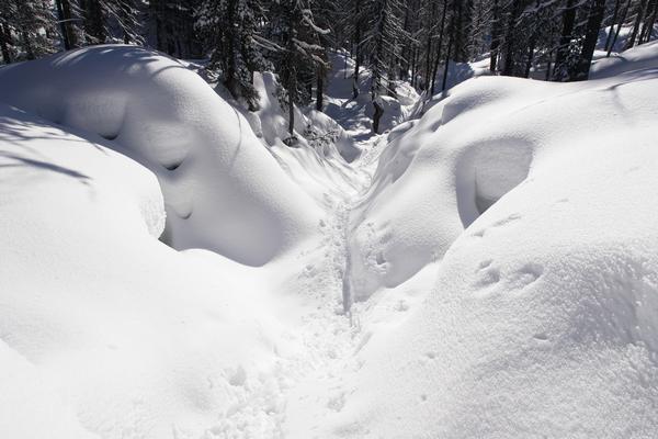 Teilweise - meist aber nur sehr spärlich - sind alte Schispuren erkennbar, die sich aber Richtung Schildenwangalm und Plankenalm verlieren.