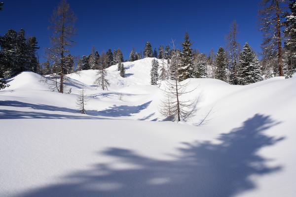 ... über das Tumerach folgen. Dann aber bin ich gleich nach dem Hochtischl nach rechts abgebogen, um dieses Gebiet auf seine Schneeschuhtauglichkeit zu prüfen.