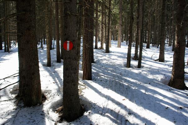 ... dann geht es wieder in den Wald hinein, entlang der Schimarkierung ...