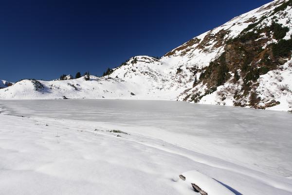 Zunächst schauen wir kurz beim Plannersee vorbei, dessen Eisschicht eher aus weichem "Gatsch" besteht.
