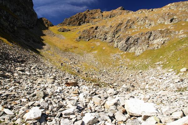 ... auch wenn die steilen - teilweise über senkrechten Felsabbrüchen liegenden Hänge - von weiter unten nicht allzu anspruchsvoll aussehen sollten.