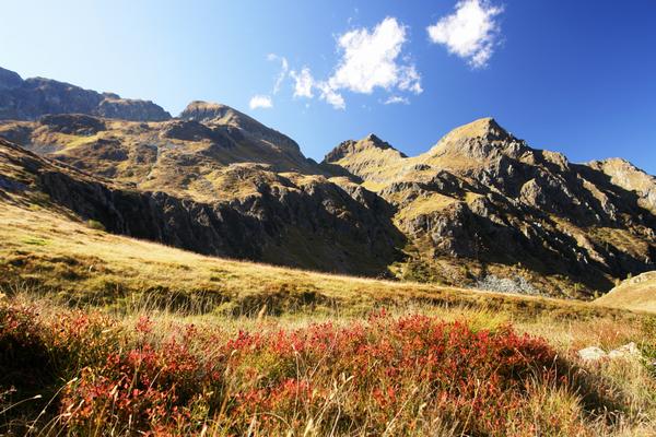 Und noch einmal der von einer Wolke in Bildmitte gekennzeichnete Opferstock. Links die Gamskarspitze und rechts eine namenlose Vorspitze des Opferstock.