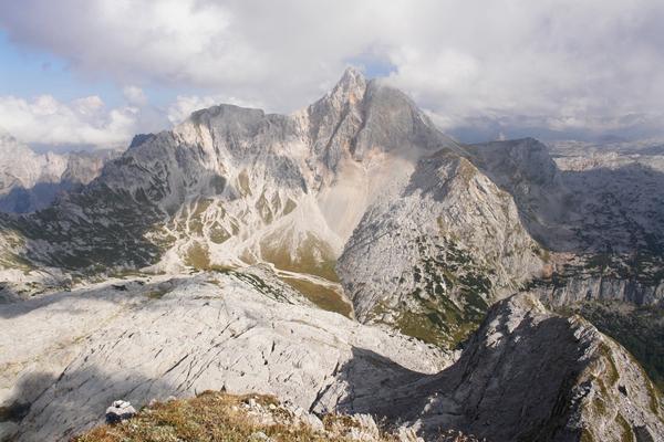 Auch wenn es schön langsam langweilig wird: Noch einmal ein Ausblick zum gegenüber liegenden Großen Hundstod. In Bildmitte erkennt man auch gut die breiten Schutthänge, über die ich 300 Höhenmeter herunter gelaufen und gerutscht bin.