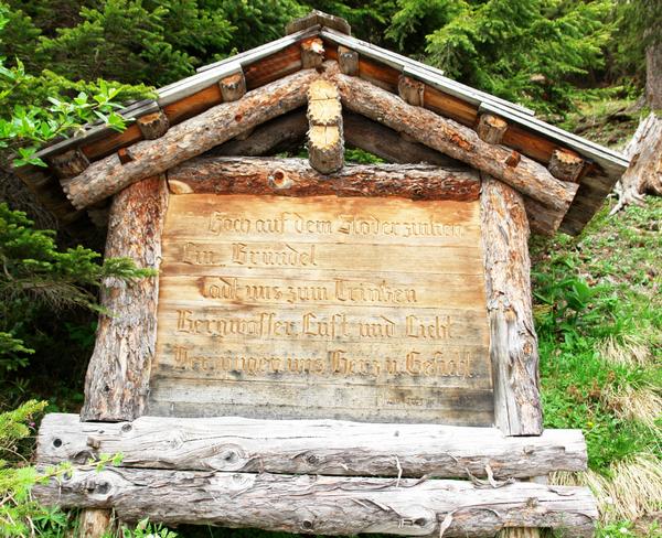 | ... und weiter zum Stoderbrünnl, wo ich mir 1,5 Liter eiskaltes, frisches Bergwasser gönne. "Hoch auf dem Stoderzinken. Ein Bründel ladt uns zum Trinken. Bergwasser, Luft und Licht, verjüngen uns Herz u. Gesicht." Paula Grogger hat mit ihrem Spruch hier allerdings nicht recht gehabt. Denn als ich voller freudiger Erwartung ob des Ergebnisses meiner Trinkkur nach Hause kam, konnte meine AlpenYetin eine Verjüngung in keinster Weise bestätigen. |