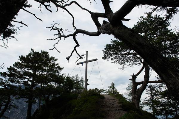 | ... und beim Gipfelkreuz. Wie schon zuvor am Stoderzinken, sehe ich auch hier am Freienstein im Gipfelbuch, dass meine Ingrid bereits vor mir hier gewesen ist. Da sie nach ihrer Verletztung heute mit fast 1.500 Höhenmetern wieder eine erste größere Tour absolviert hat, dürfte künftigen gemeinsamen "ausgewachsenen" Touren nichts mehr im Wege stehen. |