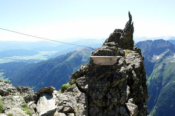 Schließlich kam ich auch bei der abgesperrten Abstiegsstelle vorbei, die in leicht überhängende, glatte Felswände führt, und von der mir der Bergkamerad am Gipfel erzählt hat.