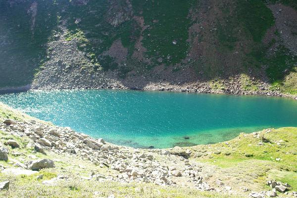 Danach schlendere ich mit gemütlichem Schritt beim türkis-grün leuchtenden und in der Sonne glitzernden Piendlsee entlang.