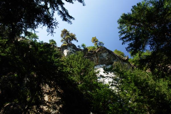 Der Wanderweg führt uns zunächst südwestwärts durch den Wald, weiter oben an schroffen, senkrechten Felswänden vorbei nach Westen, wo wir den Giglachbach überqueren.