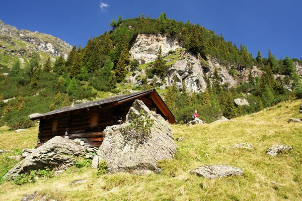 Ein kurzes Stück führte uns der Steig an einer Hütte vorbei bergab ...
