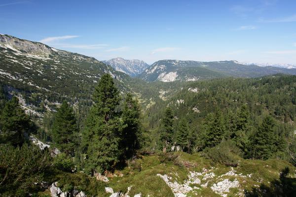 Der Anstieg über die Ostseite auf den Pfalzkogel gestaltete sich zunächst auch weitgehend einfach. Blick hinunter über mein Anstiegsgelände - über die Bildmitte zieht sich das Landfriedtal.