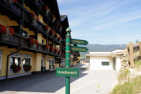 Oberhalb der gepflegten Hotelanlage folgt man dem Wegweiser zum "Hexenhaus" ...