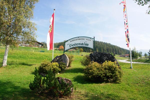 Der Wanderweg auf den Predigtstuhl führt zunächst über die Zufahrtsstraße zum großen Hotelkomplex der Seitenalm.