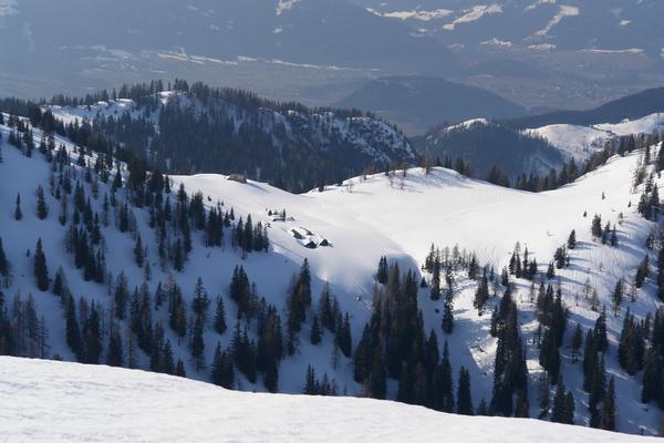 ... der Schneehitzalm, eingelagert zwischen Sonnwendköpperl im Osten und Bärenfeuchtmölbing im Westen.