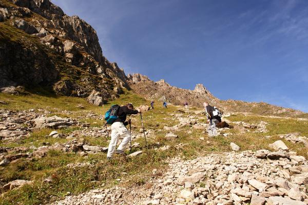 Nach dem Zusammenschluß mit dem Tiroler Anstieg aus Aschau wird der Weg zunehmend steiler. Der Steig ist aber breit und nicht allzu ausgesetzt und läßt sich gut begehen.