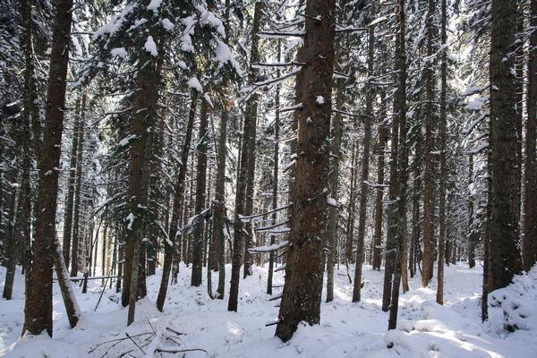 Im dichteren Wald war die Schneemenge ohnehin nicht allzu üppig ...