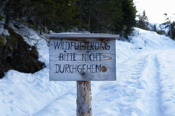 Bei einer Forstwegabzweigung zu einer Wildfütterung vorbei ...