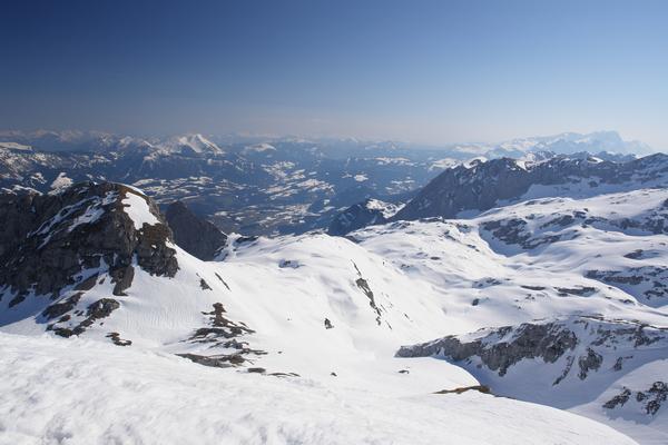 Kurze Diskussion mit meinen "Mitstreitern", welches wohl die besten Abfahrtroute sein würde. Rechts der Schwerwand - ungefähr in Bildmitte - verläuft die Strecke über die "Wies". Weiter westlich würde es noch die Möglichkeit der "Röth-Abfahrt" geben.