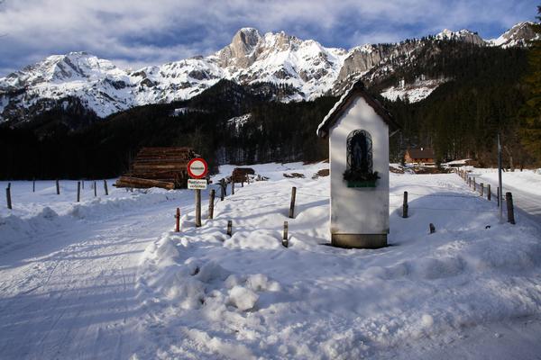 ... zum Ausgangsparkplatz, bei einem kleinen Bildstock in der Mühlau.