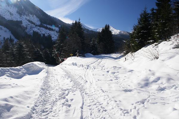 Bei der Weggabelung beim Leonhardkreuz verlasse ich den geräumten Forstweg und folge einer mehr oder weniger deutlich erkennbaren Schispur.