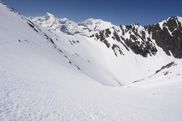 Die obersten Höhenmeter im Bruchharsch (Plattenpulver) waren weniger berauschend abzufahren. Weiter unten, auf dem harten Schmelzharsch, ging es dann besser, solange die Schneedecke nicht brach.